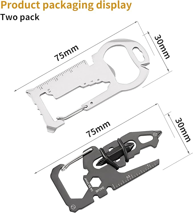 - Compact Size Multi-Tools - Going outdoors? These 2 multi-tools are perfect for you! Featuring screwdrivers, key fobs, hex wrenches, metric rulers, can openers, bottle openers and spoke wrenches, all bundled into a compact size that's perfect for everyday carry.