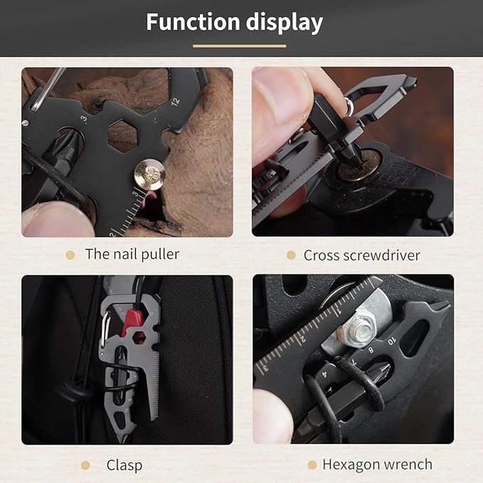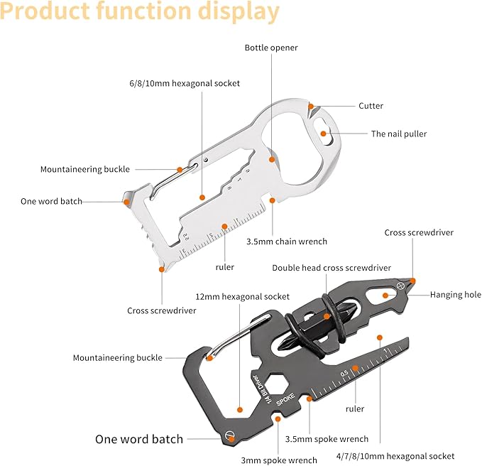 - EASY TO CARRY - Easy to carry lightweight mini multi-purpose tool. And there are 15 different tools, its portable design allows you to easily carry it in your pocket or hang it on your backpack, or carry it as a key chain, it is a great addition to any key chain and can be carried anywhere.