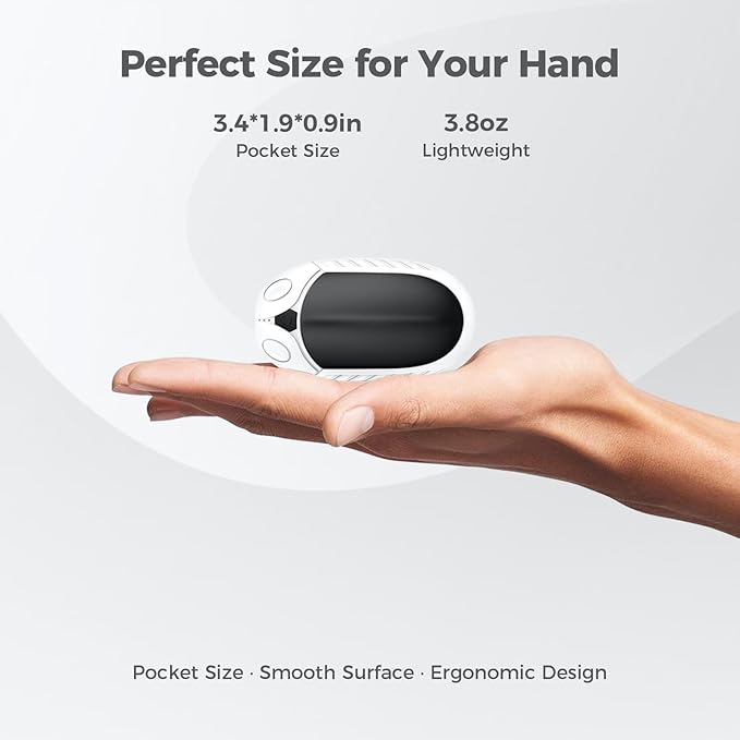 - Portable - Our hand warmers rechargeable net weight 3.5oz, only 30% of the weight of traditional hand warmers, 30% of the size of the phone, easy to carry, easy to put in pocket.