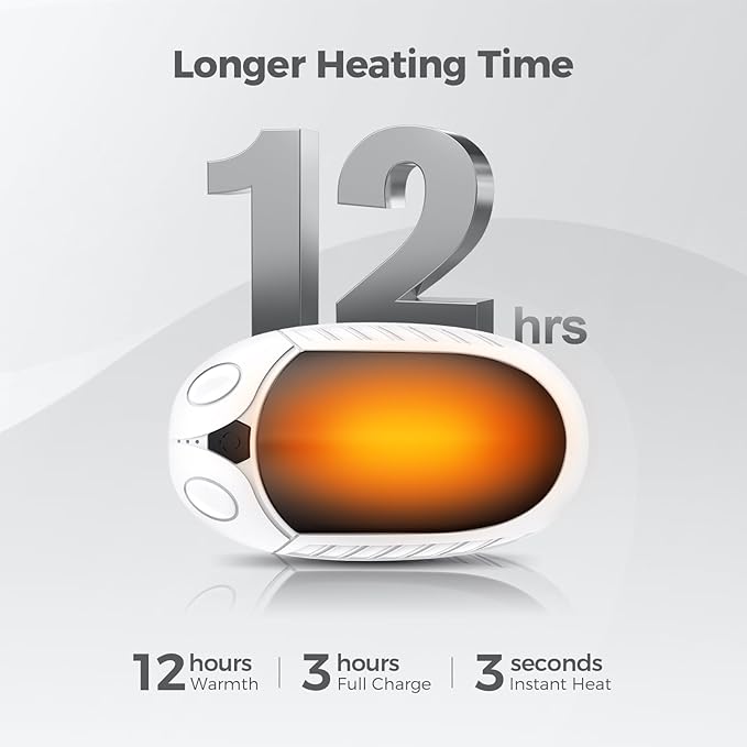 - Long-lasting Heating Than Ever - This electric hand warmer adopt a new heating scheme and battery, minimal weight and maximum lasting Heating, provide up to 12 hours of heat.