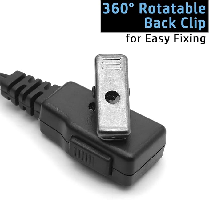 - Made of durable materials: PU cable, metal double pin audio plug, 2 metal swivel collar clips, soft silicone acoustic tube and earbud
