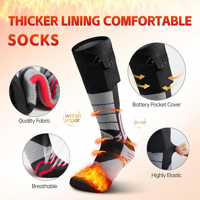 - 【Unisex size heated socks】 Size L 5-9 feet; size XL 9-14 feet. If your size is in between, please choose a larger size.