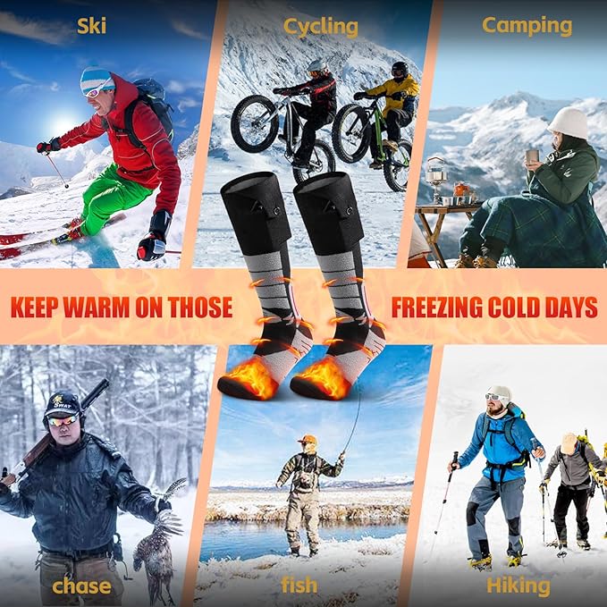 - 【Unisex size heated socks】 Size L 5-9 feet; size XL 9-14 feet. If your size is in between, please choose a larger size.
