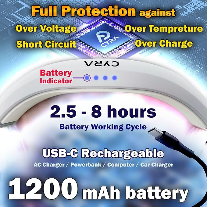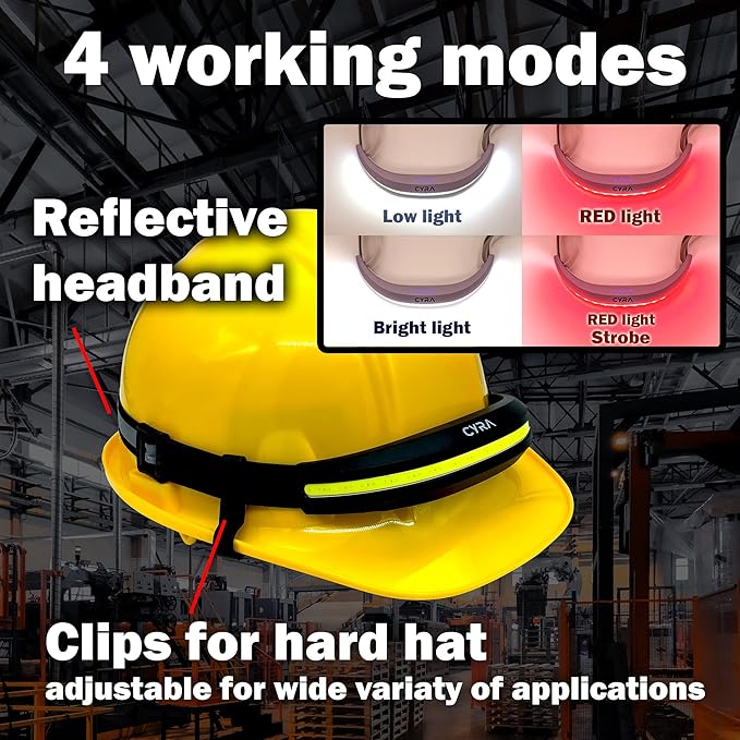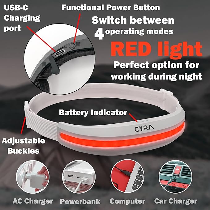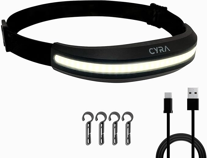 CYRA LED Headlamp Rechargeable USB-C, IPX4 Red Light Option 230°, 400 Lumen Wide Beam Hard Hat Light, 2.1oz Lightweight lightbar Head Lamp for Hiking & Camping Accessories, Running, Outdoor, Adults