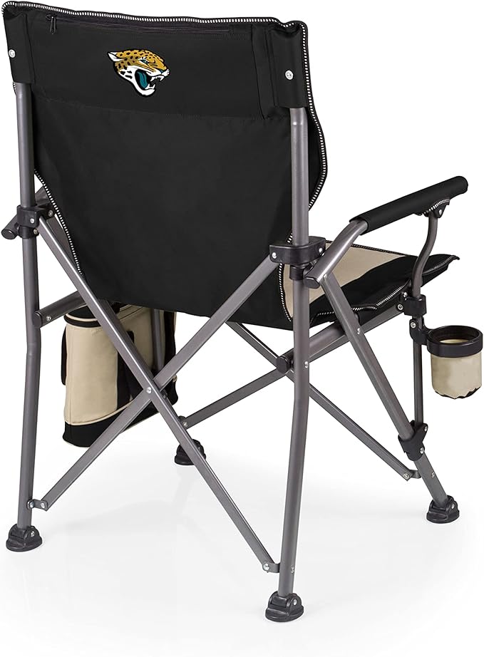 - GET OUTSIDE - The NEW NFL Jacksonville Jaguars Outlander Folding Camping Chair with Cooler by Oniva, a Picnic Time brand, is a heavy duty beach chair with drink holder, 9 can cooler, and easy carry transport bag