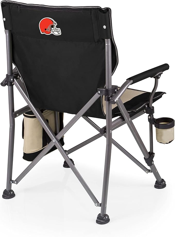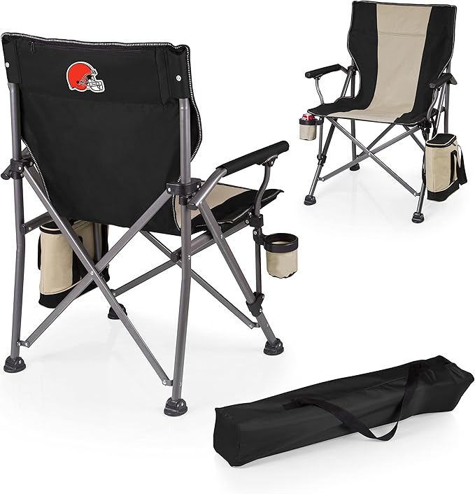 - GET OUTSIDE - The NEW NFL Cleveland Browns Outlander Folding Camping Chair with Cooler by Oniva, a Picnic Time brand, is a heavy duty beach chair with drink holder, 9 can cooler, and easy carry transport bag