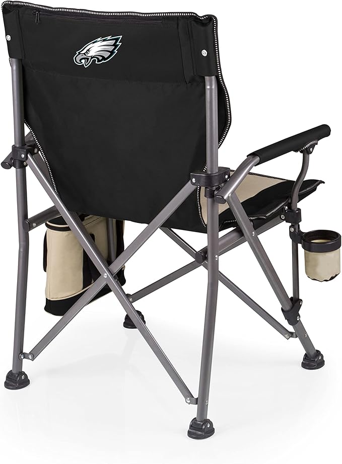 - GET OUTSIDE - The NEW NFL Philadelphia Eagles Outlander Folding Camping Chair with Cooler by Oniva, a Picnic Time brand, is a heavy duty beach chair with drink holder, 9 can cooler, and easy carry transport bag