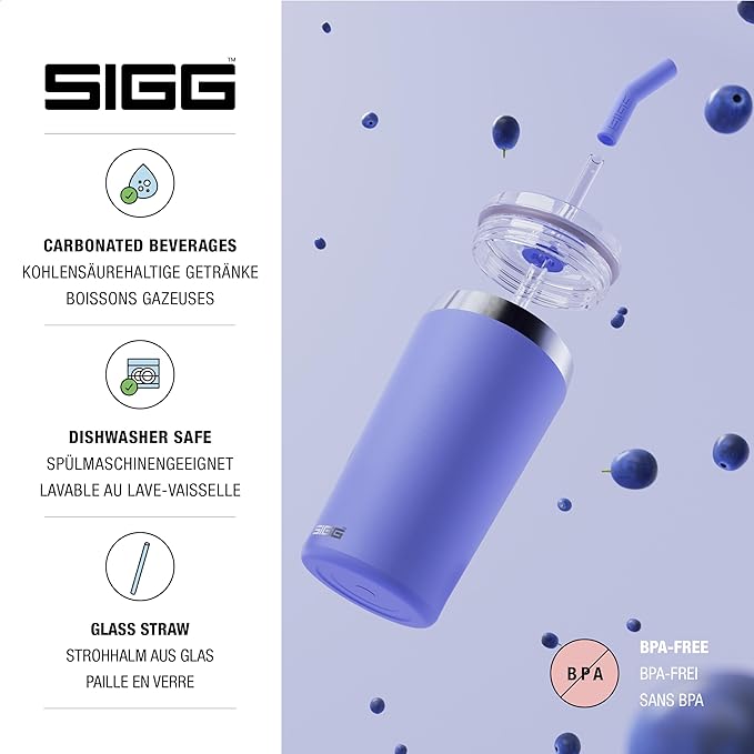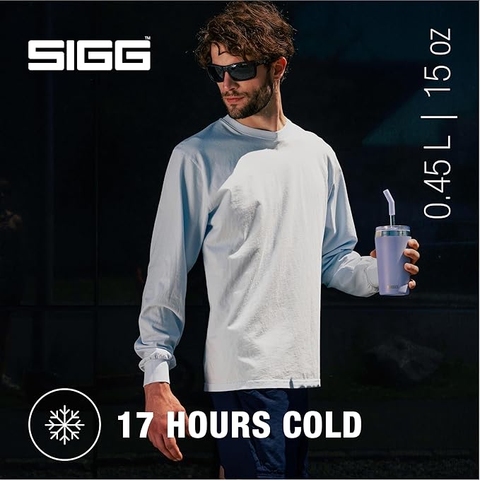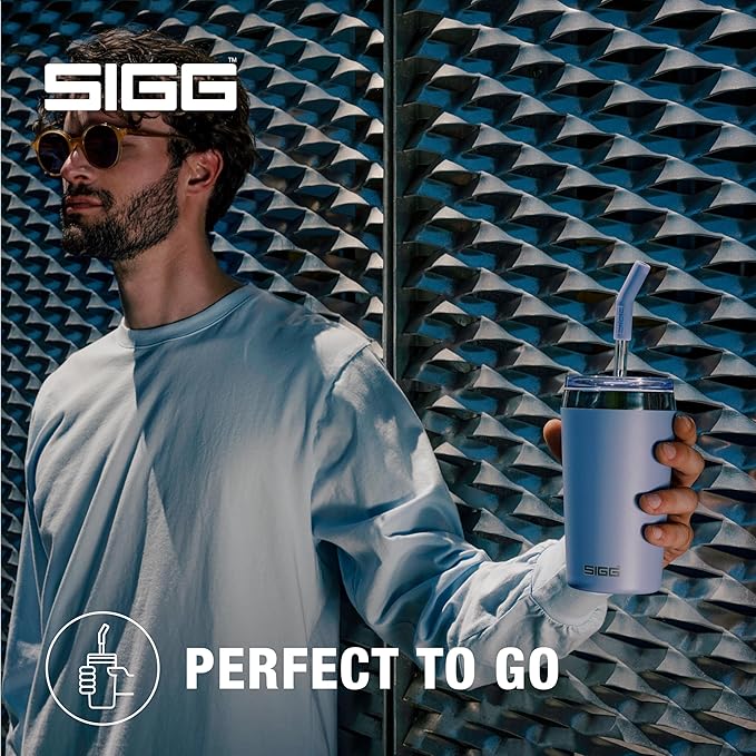 - Scope of delivery: Sigg Helia Tumbler Peaceful Blue 18/8 Stainless Steel 15 oz, insulated mug with straw-cleaning brush, BPA and pollutant-free, handwash recommended, item number: 6015.00