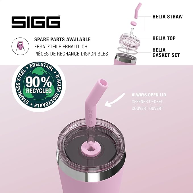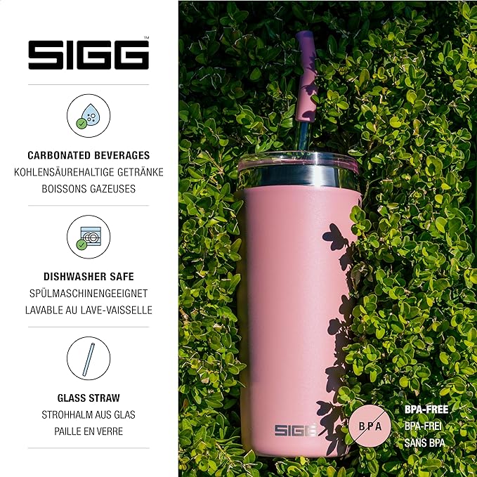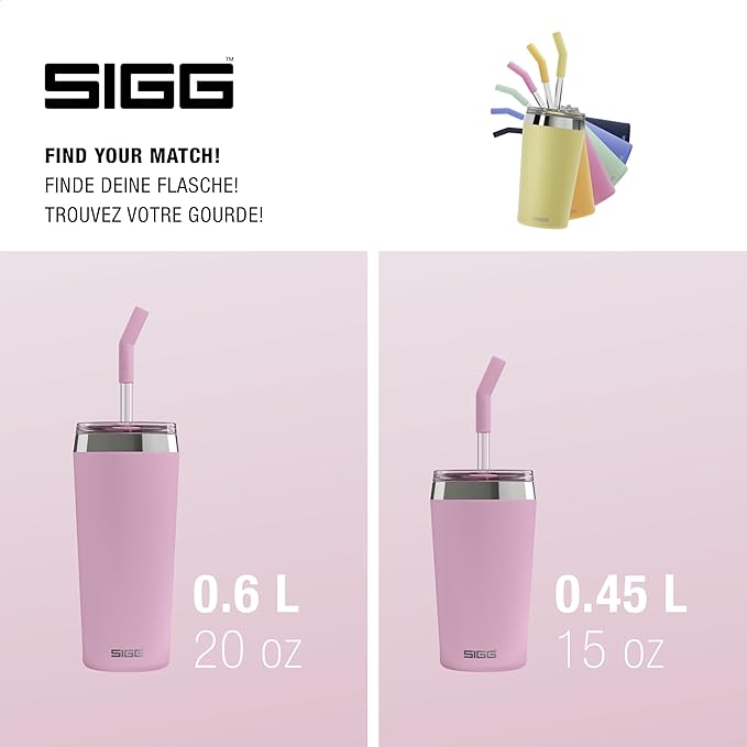 - Scope of delivery: Sigg Helia Tumbler Lingonberry 18/8 Stainless Steel 20 oz, insulated mug with straw-cleaning brush, BPA and pollutant-free, handwash recommended, item number: 6015.90