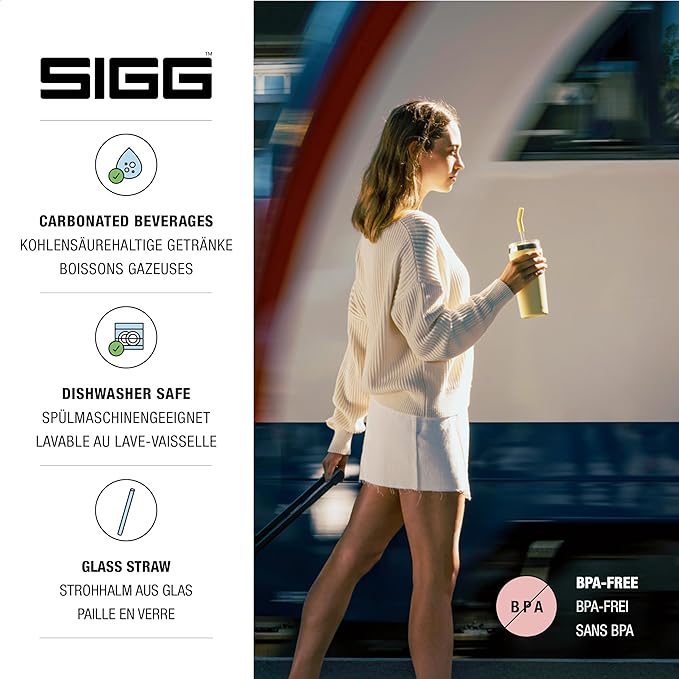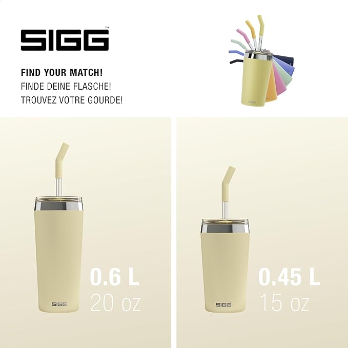SIGG - Insulated Mug - Travel Mug Helia - With Durable Glass Straw & Cleaning Brush - Leakproof - BPA Free - 18/8 Stainless Steel - 15oz/20oz