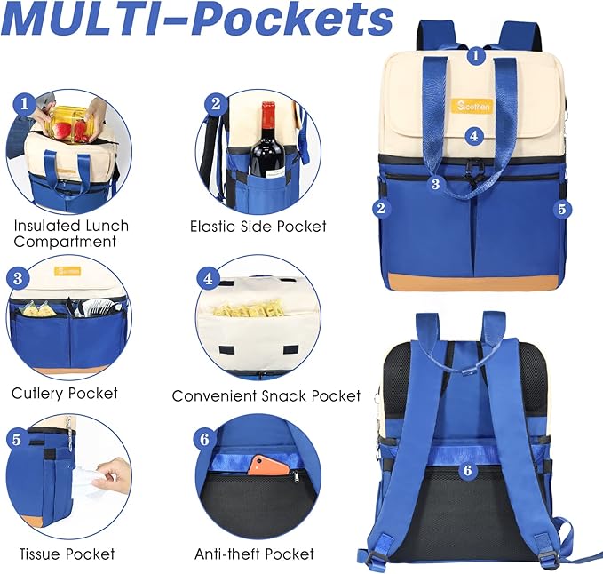 - 🍱Hot & Cold Separation Design: The unique double-layer structure of Scothen small cooler backpack is designed for women. The bottom compartment can house ice packs, suitable for cold and fresh contents, the upper compartment perfect for warm dry goods and lunches.We recommend storing hot and cold foods and drinks separately for better results. It is a must-have beach cooler backpack for women! It can also be used as a breast pump bag with cooler to store breast milk anytime at work 🍼 !