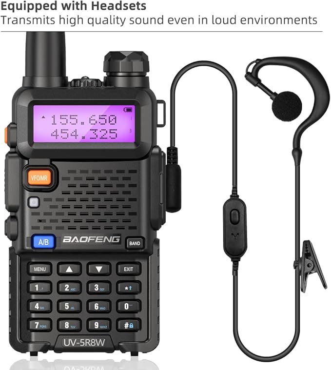 Baofeng UV-5R 8W Ham Radio Handheld Long Range UV5R Two Way Radio with Double Battery Extra Programming Cable Speaker Mic Rechargeable Walkie Talkies (Black-8W 1Pack Full Kits)