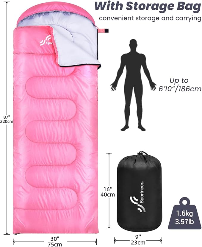 Sportneer Sleeping Bags for Adults, Warm & Cold Weather Sleeping Bag for Adults Kids Boys Girls - Lightweight Compact Camping Gear Equipment, Traveling, Backpacking, Hiking