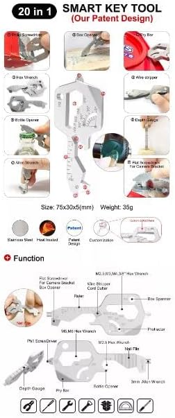 - 20-In-One Stainless steel key multitool