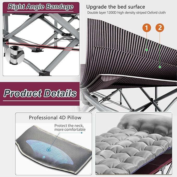 - Versatile Functionality: Can be used as a lounge cot for sunbathing; suitable for indoor and outdoor activities like camping, hiking, or fishing