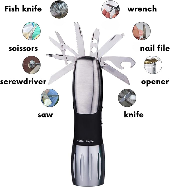 Car Emergency Tool Flashlight Escape Tool Light Multi-tool LED Flashlight torch with 8 Tools Including Flashlights Knief Bottle Opener Scissors Screwdriver