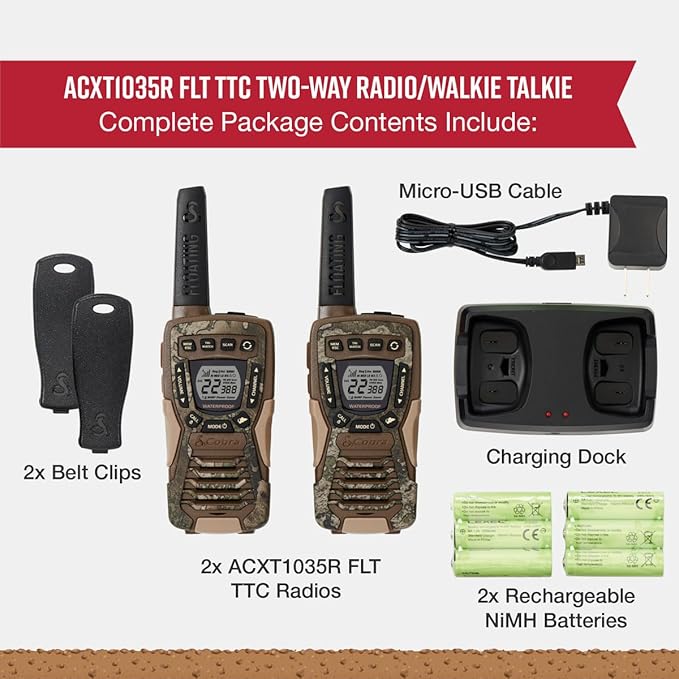 Cobra ACXT1035R FLT Waterproof Walkie Talkies - Rechargeable, Floats, 22 Channels, Long Range 37-Mile Two-Way Radio Set (2-Pack)