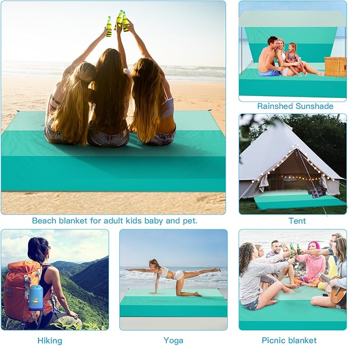 - 🏕️Beach Blanket Oversized:Good tear resistance,dry quickly.Also can be used as a rain shed,sunshade,tent,toddler crawl,emergency mat.Feel comfortable to lying down.Won't irritate your skin,better professional fabric sewing.