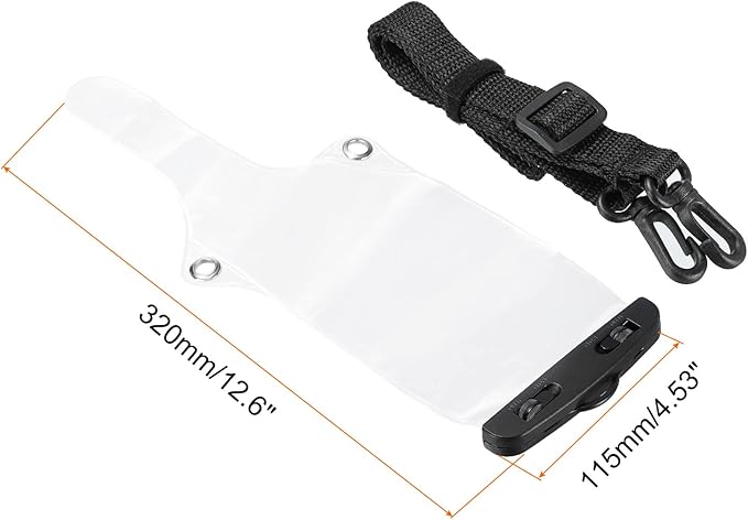 - Bag Color: Clear; Material: ABS+PVC; Size: Approx.320 x 115mm/12.6 x 4.53(L*Max.W); In the package of: 1pcs x Portable Radio Waterproof Bag, 1pcs x Lanyard.