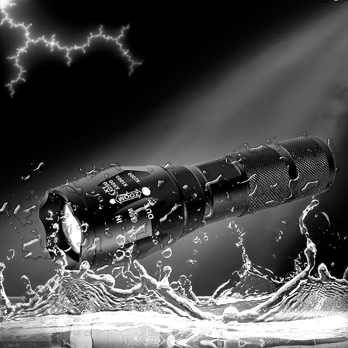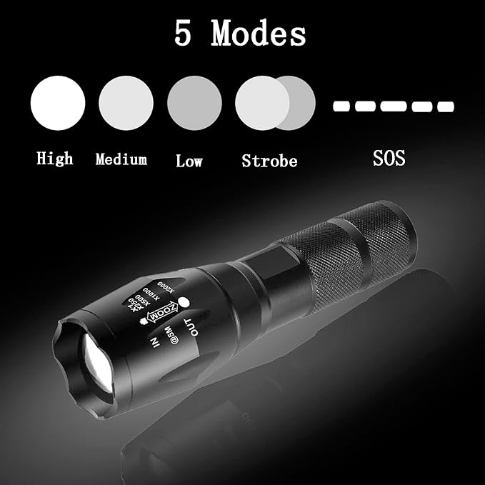 - ZOOMABLE: This LED flashlight has adjustable focus with zoom in and zoom out function for long range illumination and wide range illumination.