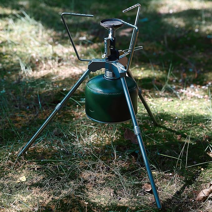 - A stand for outdoor screw on type gas fuel canister and backpacking/camping devices. The large upper support (trivet part) provides firm support for big pot, and it is stable even on rough terrain such as mountain climbing and rocky areas.
