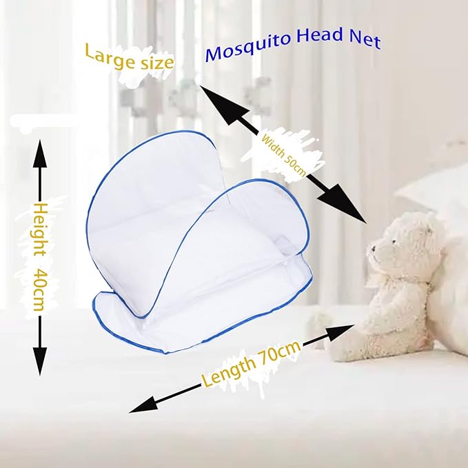 - Unique and innovative design: the mosquito net only covers the head, with the use of the quilt, keeping you a peaceful and relaxing night's sleep. Mosquito heat net size is L27.56 * W19.69 * H15.75, suitable for a normal-sized single pillow. The large size mosquito heats net is also suitable for children under 70 cm