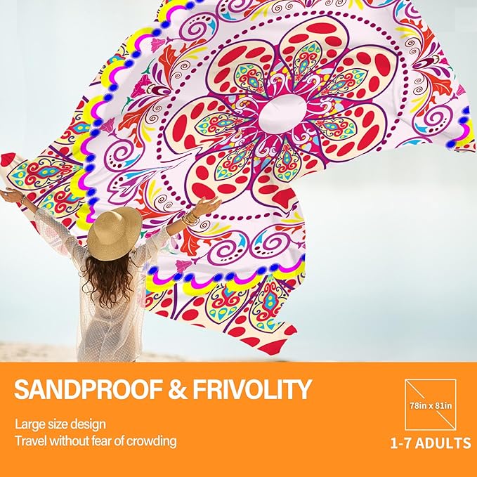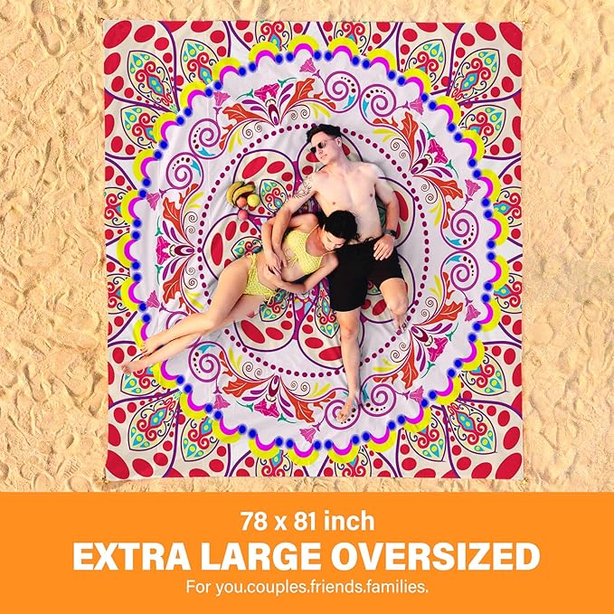 - Oversized Extra Large Beach Blanket :78" X 81"Size,1-7 Adults in total,Made by parachute fabric,More than 30% larger than other blankets,12 oz easy to carry!