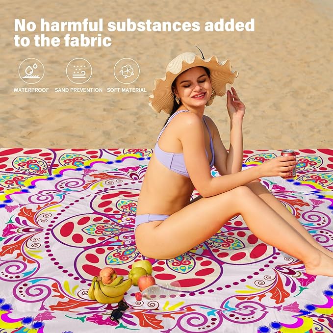 - Beach Mat Blanket Sandproof:You Just shake the blanket and it easily gets rid of all the sand once,Keep the Blanket clean at all times,Washed by washing machine or by hand.