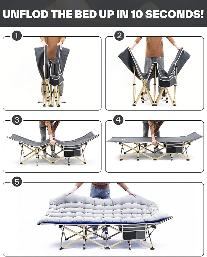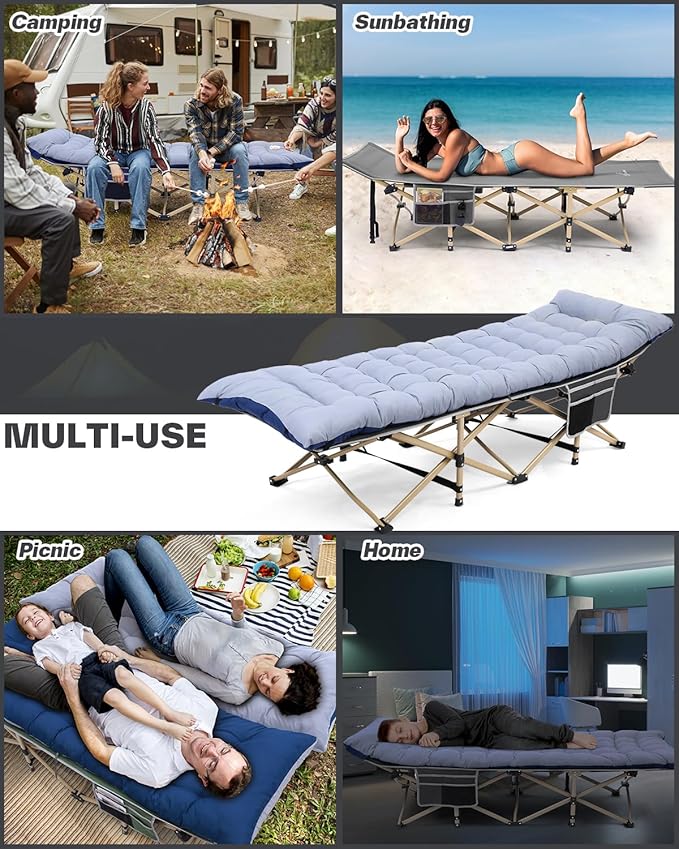 - Use Anywhere: You can bring the foldable outdoor camping cots for adults with mattress anywhere you take adventures, from indoor use to camping, the beach, the office or for visiting guests at home. Give yourself better sleep!