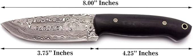 - 🗡:KNIFE DIMENSIONS: It is best as a Hunting, Survival, Camping, Skinning and Tracking Knife a complete Package of an Outdoor Adventures. 8 inch Total Length, 3.75 inches Blade and 4.25 inches Handle.
