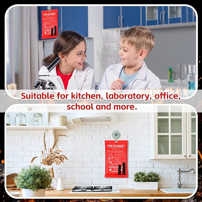 - Easy to Use: pull down tabs on the fire proof blanket, spread the blanket to cover the fire, let the emergency fire blanket sit there for a few seconds to suffocate the fire, turn off the stove or other heat source, and wait for the blanket to cool before throwing it away