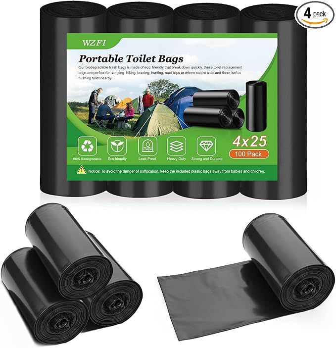 100 Portable Camping Toilet Bags,8 Gallon Super Thick Camping Toilet Bags Biodegradable Porta Potty Bags Leak-Proof Trash Bags for Adults Outdoor Boating Travel