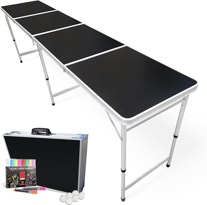 PartyPong 8-Foot Folding Pong Table w/LED Lights, Erasable Markers & Pong Balls - Black Erasable Surface