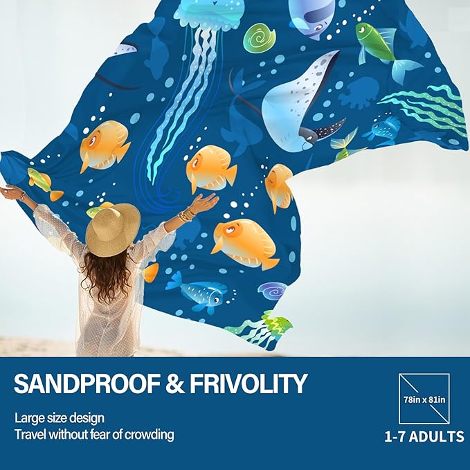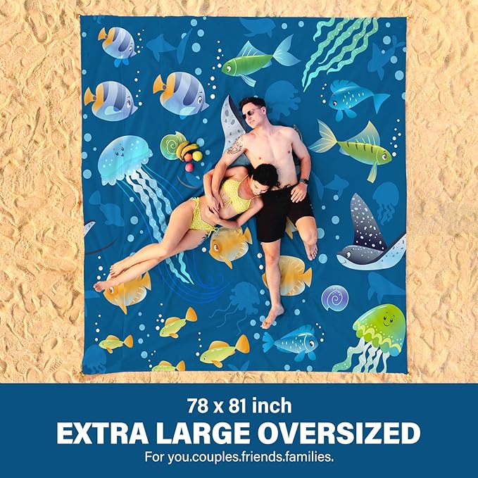 - Oversized Extra Large Beach Blanket :78" X 81"Size,1-7 Adults in total,Made by parachute fabric,More than 30% larger than other blankets,12 oz easy to carry!