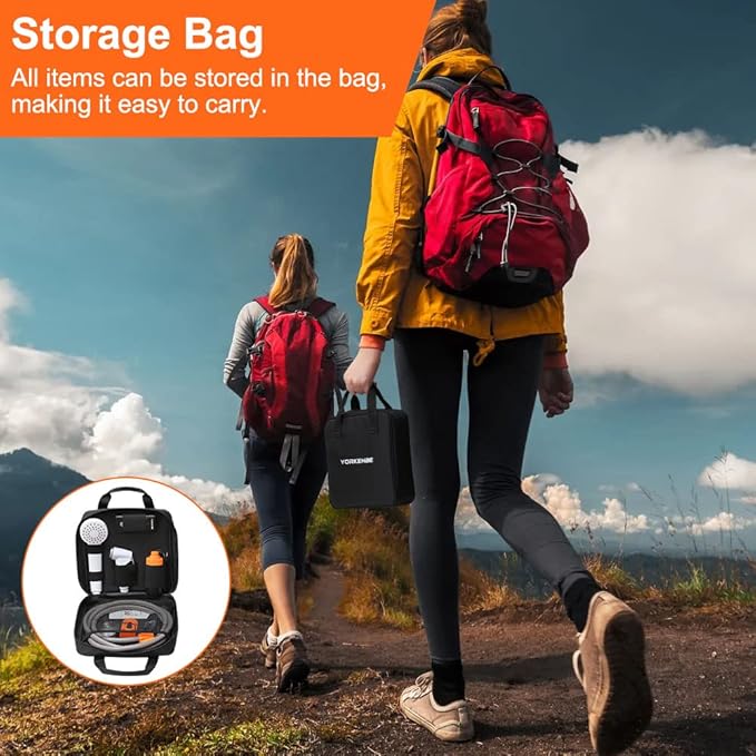- 【Multiple-uses】This compact shower pump is ideal for outdoor activities such as camping, car washing, pet cleaning, and more. Its versatility extends to traveling, hiking, road trips, and fishing, ensuring reliable performance wherever you go.