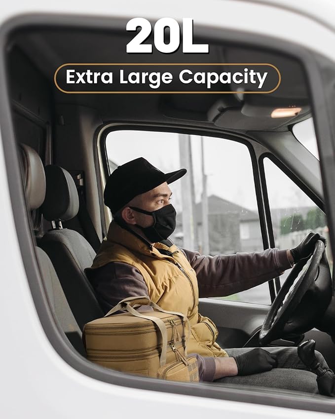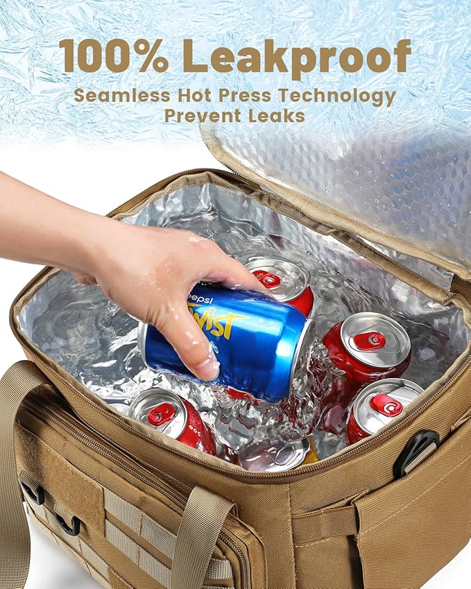 RalChyez Tactical Lunch Bag, 20L Large Heavy Duty Double Deck Insulated Lunch Box Leakproof Expandable Tote Cooler with Shoulder Strap for Adult Men Women Work Fishing Picnic Travel Tan