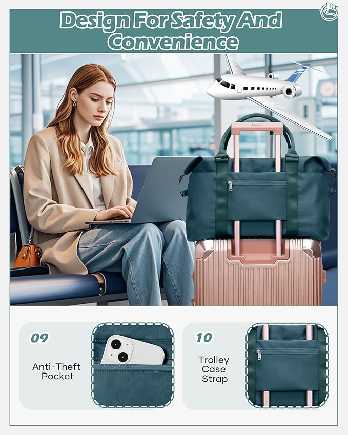 - 【Large Capacity Travel Bag】 Multiple internal and external organization pockets of travel bag ensure that you have a place to hold everything. Large storage space for short-term travel clothes, 6-8 summer clothes, cosmetics, toiletries, wallets, keys, headphones,mobile phones and other items. This weekend bag is equipped with an adjustable and removable shoulder strap. If you want to carry it on your shoulder, you can release your hands, which allows you to carry it as easily as a shoulder bag.