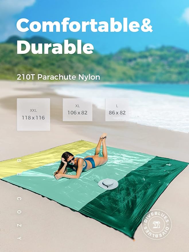 - 👙 Experience Ultimate Comfort and Durability. Our blanket is made of breathable Parachute Nylon, which is not only comfortable but also durable and rip-stop. It's designed to last and comes in gorgeous colors. Plus, it's water-resistant to keep moisture off your skin.