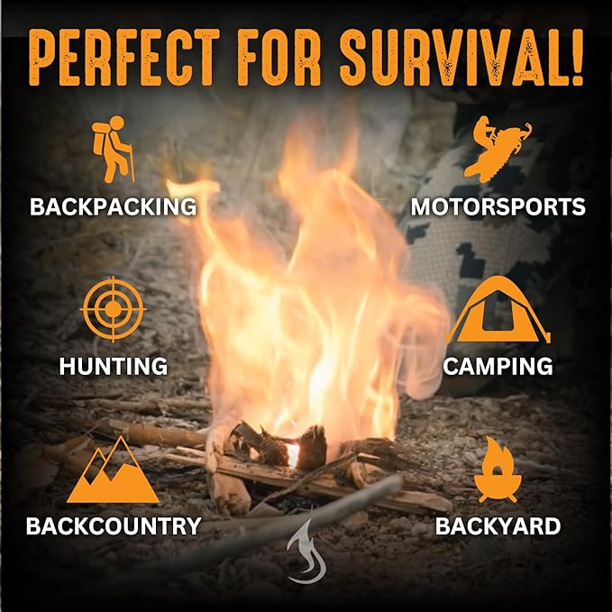 - WORKS IN ANY CONDITION: Our waterproof and windproof ferro rod works in any condition and altitude. No matter the adventure, you can count on getting your campfire going.