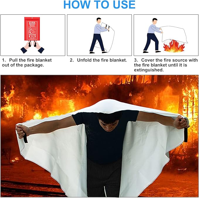 - 【EASY TO USE AND STORE】 Simply deploy the blanket by pulling down the tape, cover the fire source until it is extinguished. It has a hole slot so it can also be easily hung on the wall. You can keep a fire blanket in the kitchen, backyard, vehicle, or take it camping