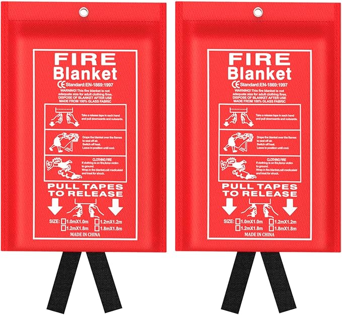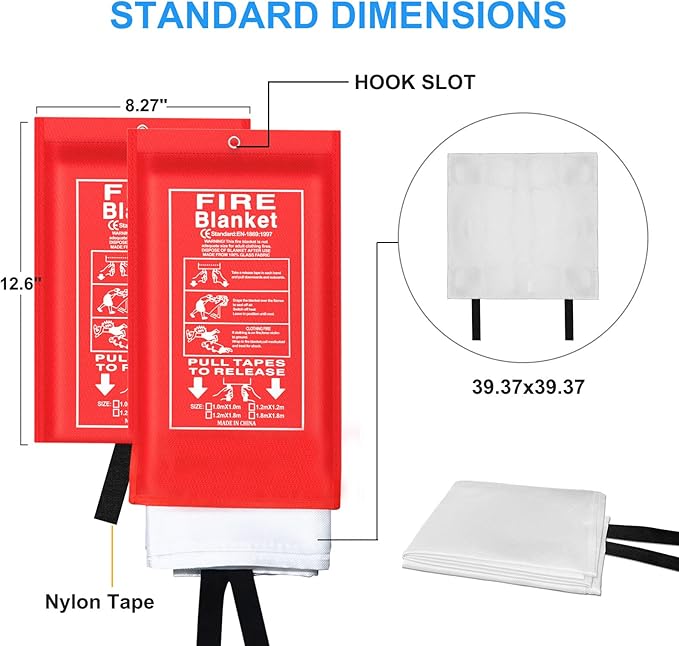 Emergency Fire Blanket for Kitchen and Home, 2 Pack 39.37” x 39.37” Fiberglass Fire Safety Blankets for Survival, Suppression Fire Retardant Blanket