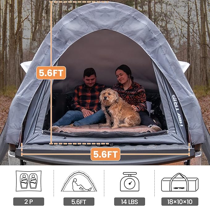 - Suitable For Pickup Truck:Transform your 5.5–6.0 ft pickup truck bed into a comfortable campsite with the HEYTRIP truck bed tent! This roomy pickup truck tent is perfect for camping and providing a cozy sleeping experience off the ground for two adults.