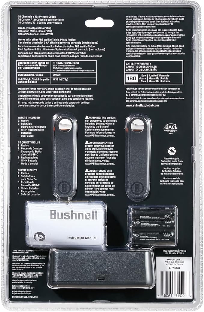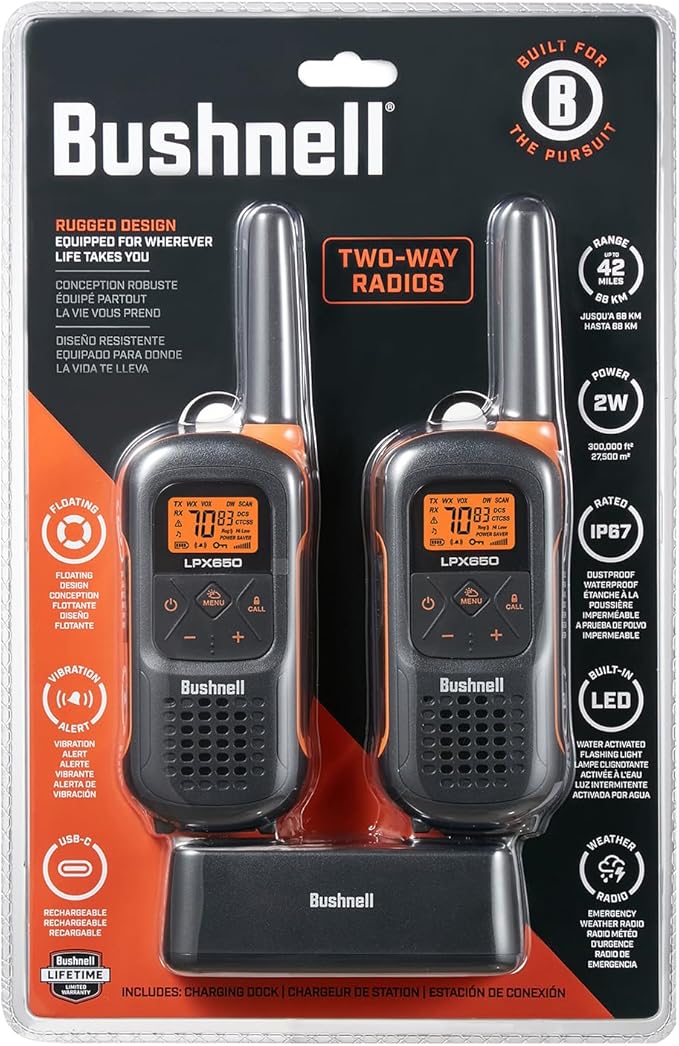 New Bushnell LPX650 Walkie Talkies - Waterproof Long Range Two Way Radios, IP67 Rugged Floating Design, USB-C Rechargeable - Equipped for Wherever Life Takes You (2 Pack)