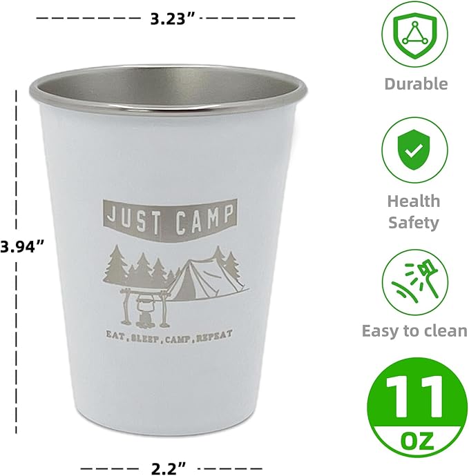 - Sturdy - Reusable, durable, eco-friendly metal drinking glasses. With a 11oz capacity, they're perfect for both adults and kids