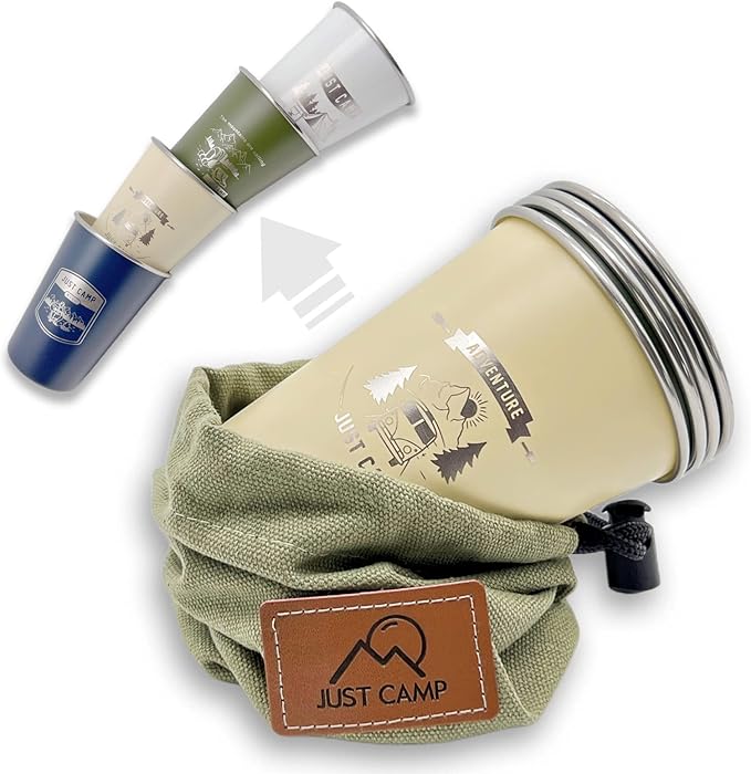 - Built for the great outdoors - These 4 cups are stackable and come with a sweet-looking 12 amps canvas staorage bag, so they won't take up too much space or get dinged up during transport