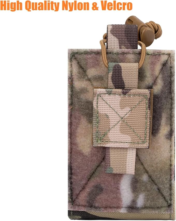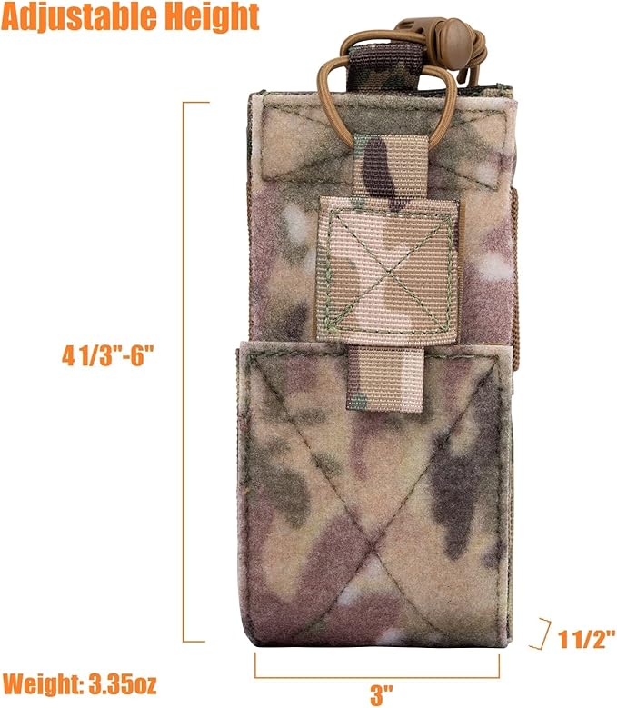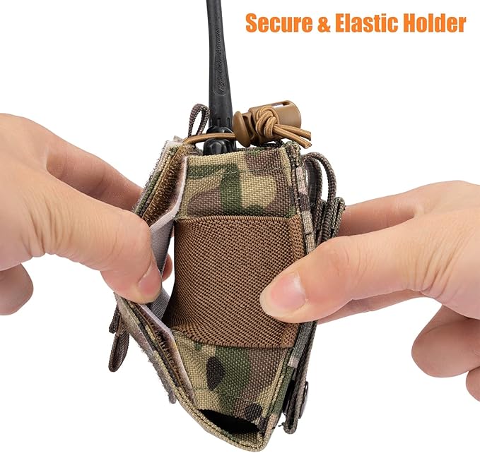 - Quick and easy take on and off, lightweight, durable and adjustable. Hook and loop closure can be released with one hand. The bungee cord can be easily adjusted to securely fix radios/mags of various sizes.