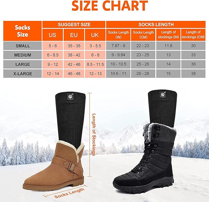 - 【Widely Uses】: SNOW DEER heated socks are used by many people for a variety of different reasons ranging from working in cold conditions, hunting,fishing,skiing,motorcycling,hiking.and even just having cold feet around the house. it is a perfect solution for those chilly winter nights and days.