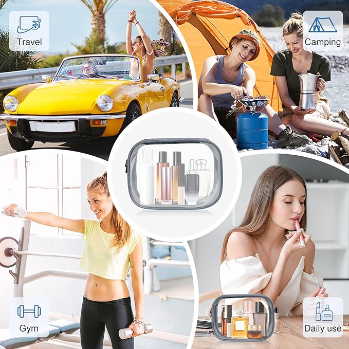 Moyad TSA Approved Clear Toiletry Bag, 2 Pack Quart Size 3-1-1 Liquids Pouch for Travel, Transparent Makeup & Cosmetic Organizer for Women Men, Grey