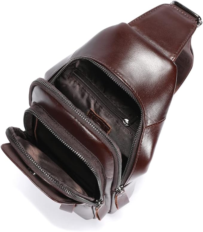 KPYWZER Vintage Leather Sling Bag Backpack for Men Crossbody Shoulder Chest Day Pack Backpacks Coffee