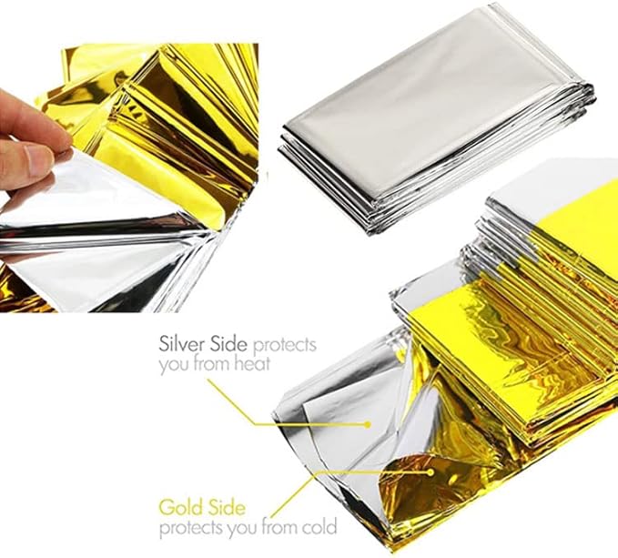 - ✅ EMERGENCY MYLAR THERMAL BLANKT PREMIUM HIGH DURABLE QUALITY: Which made by precipitating gaseous aluminum onto the foil film, using the principle of heat reflection to slow down the body's heat emission and retain up 90% of your body heat. Effective to avoid hypothermia and shock in an emergency situation.